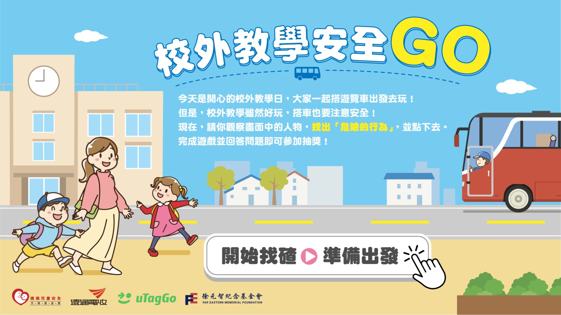 今年,靖娟兒童安全文教基金會攜手遠通電收、遠東集團及徐元智先生紀念基金會,特別為國小學生推出 《校外教學 安全Go》線上闖關遊戲!